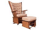 Our seating options are available with woods seats, fabric seats, or a wide selection of beautifully upholstered cushions. Patterns range from traditional favorites to more contemporary styling that allows the comfort of a rocker or glider to be fashionable enjoyed along with the most modern decor.